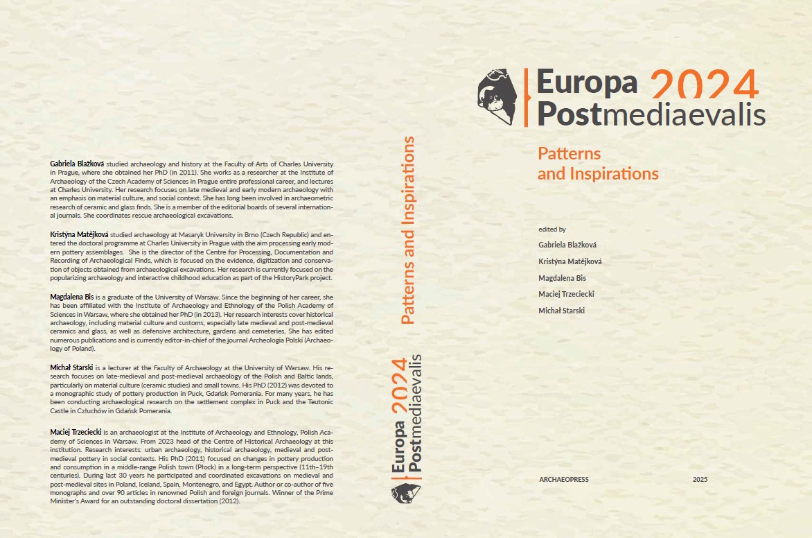 This anthology is a collection of articles from the EUROPA POSTMEDIAEVALIS 2024 "Patterns and Inspirations" conference. The conference was held in April 2024 in Warsaw, Poland. Both conference and proceedings resulted from the cooperation with our Polish colleagues. The fourth proceeedings contains 27 contributions from eleven European countries concerning post-medieval pottery, its decoration, patterns, inspirations and even more!